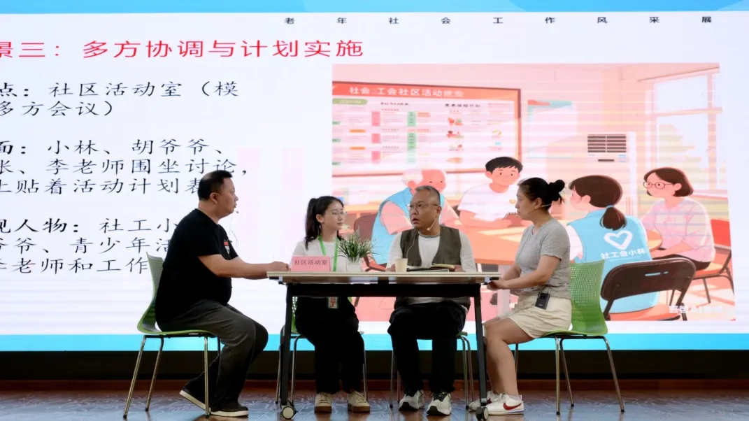 13日上午,老年社会工作风采展示环节重磅开启。前期经严格遴选脱颖而出的10支老年社会工作队伍通过理论考核与情景模拟两个关键环节,全方位展示社工队伍的专业能力。