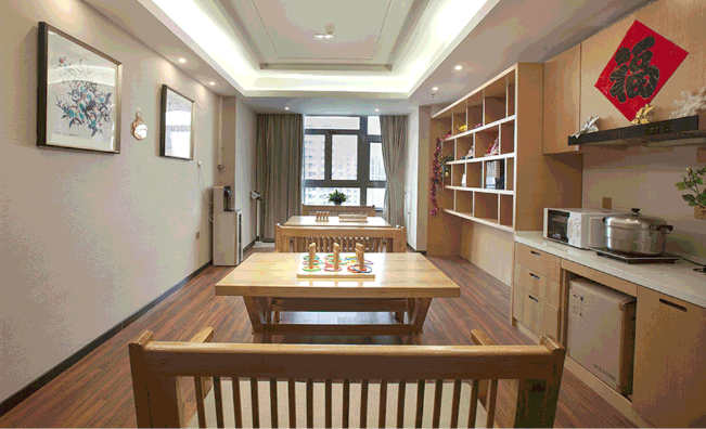 秉承以人为本的服务理念,针对老年人的生活质量需求和日常需求,盛经合乐园老年公寓起居房间配备了欧派全屋定制家具,护理老人的房间另配有德国进口全自动护理床,所有房间均配备有地热、空调、24小时热水和电视、冰箱、网络、洗衣机等设备。盛经合乐园老年公寓夜间有感应照明,卫生间采用防滑瓷砖。盛经合乐园老年公寓内部随处可见紧急呼叫系统等适老设施,老年人日常生活需求一应俱全。照护方面,公寓接待每一位新到的老人入住时,都会根据家属提供的体检报告,为老人建立健康档案,且每天都会查房护理老人,实时掌握老人的身体情况。这样以来,照护人员不仅能够及时发现问题、采取措施,还可以应家属要求随时提供有效的信息反馈。为做到对老人无微不至的呵护和胜似亲人的关爱,盛经合乐园老年公寓对自理型老人和护理型老人分别采取不同的照护模式。