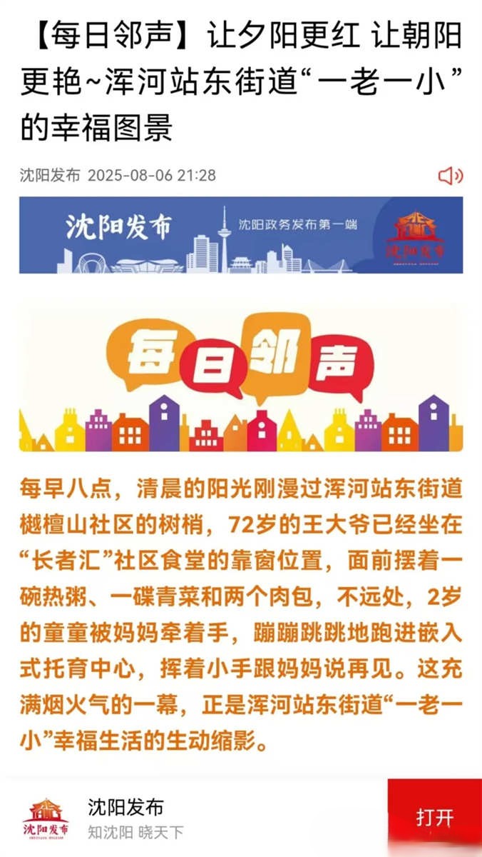 沈阳日报2025年8月8日报道金地樾檀山长者汇社区食堂原文如下:
