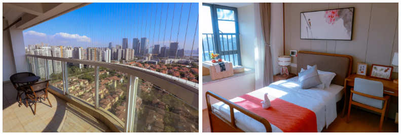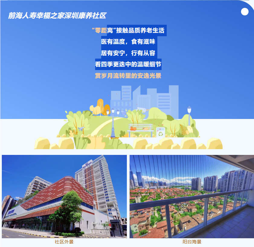 深圳幸福之家位于宝安中心区,地处前海湾区,社区总建筑面积约5.6万㎡,由两栋中、低层建筑组成,分为活力长者区、颐养护理区和功能服务区,中式雅韵风格和海景型公寓在这里精巧融合,每一处设计既体现美学,又服务于长者的日常生活。在这样精心打造的环境里,长者们得以安享惬意的康养时光。