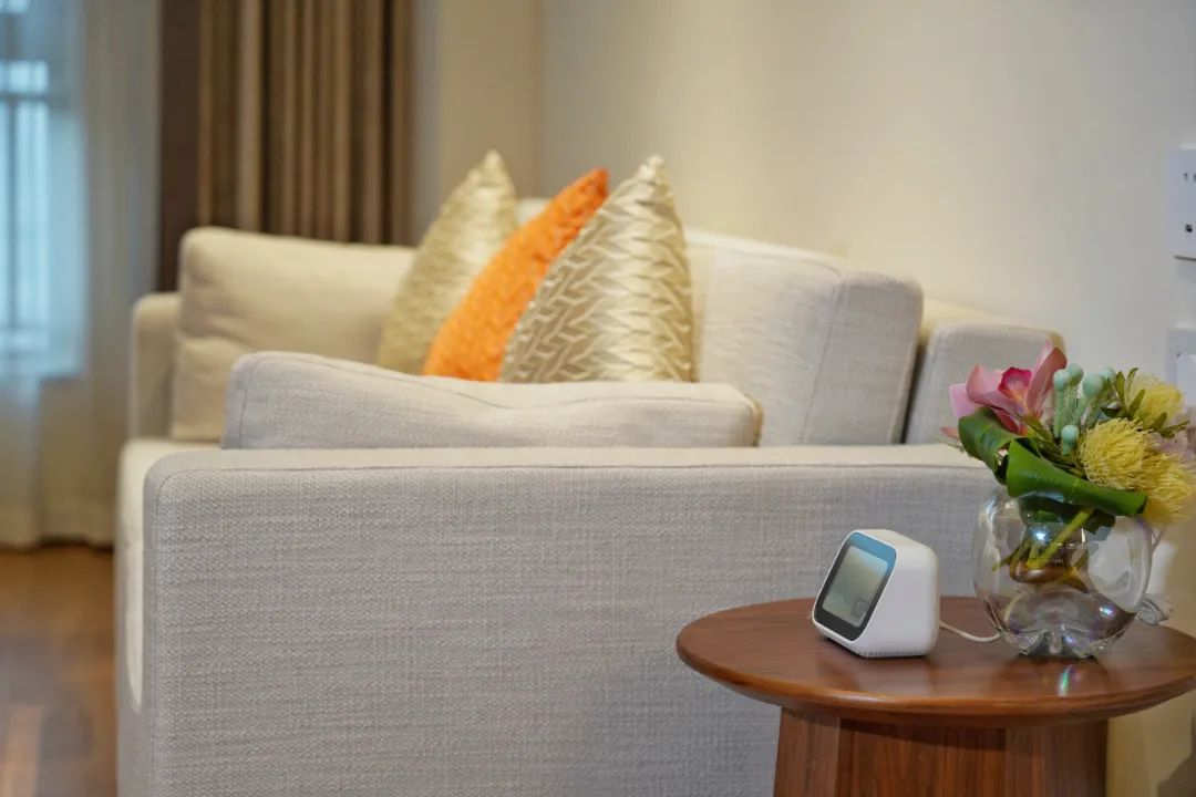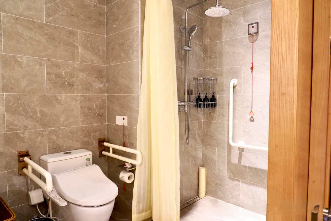 全屋无高差地面、圆角家具、防滑地砖、紧急拉绳报警系统、一键呼叫、智能灯光控制、空气监测系统。