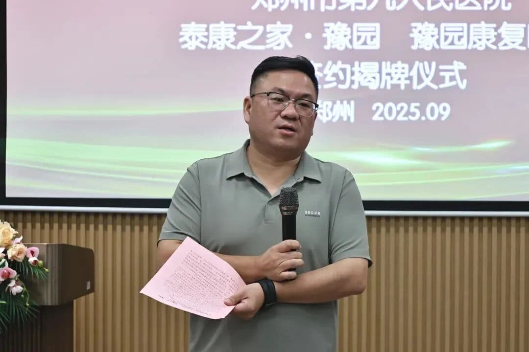 郑州市第九人民医院肖镭院长在致辞中介绍了九院的发展情况,他表示,此次合作是响应健康中国战略、深化医养融合的重要实践,九院将充分发挥在老年医学领域的专业优势,与泰康共同打造区域老年健康服务新高地。