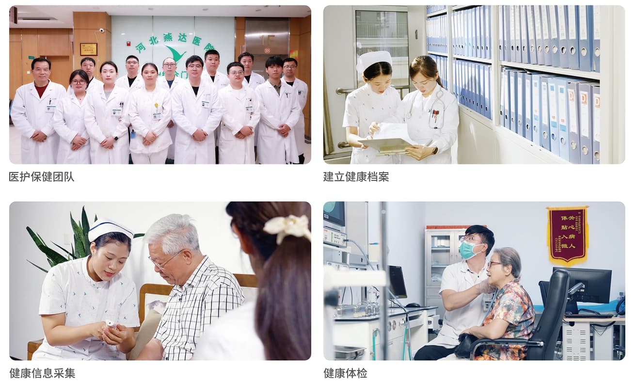 社区配备的保健医护人员,为宾客提供健康体检、建立健康档案和健康管理服务。对宾客患有三高、心脑血管、肿瘤、失眠、焦虑、抑郁、便秘等慢性疾病,提供管理和干预服务。对患有大病和重病的宾客,由燕达医院有关专家进行诊疗或干预。以此,实现每位宾客都具有自身的保健医生,为宾客身体健康保驾护航。
