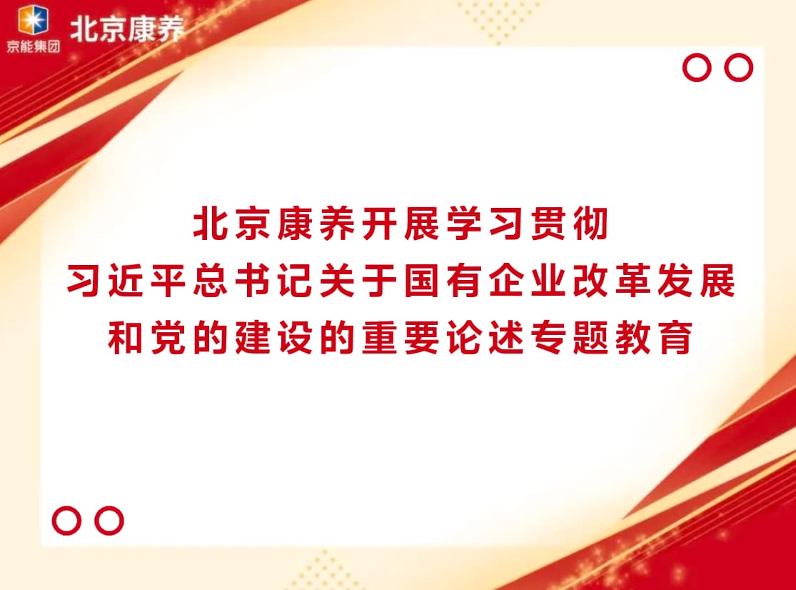 开展好这次专题教育是当前公司一项重要政治任务,专题教育于10月启动,12月底前结束,北京康养党委将高度重视、精心组织,把理论学习、总结检视、整改提升贯通起来,一体推进。